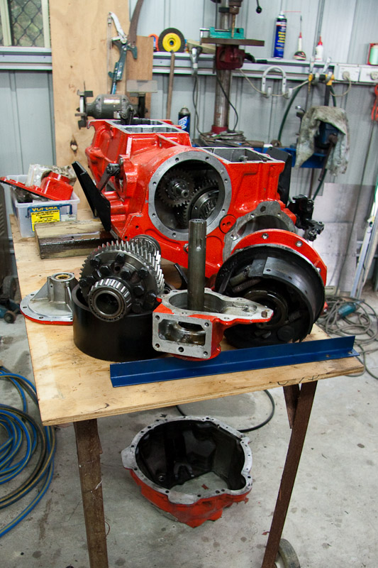 First mission achieved, CanDo is going. Now the incedentals starting with rear diff, detroit locker and springs sorted and refitted. Gearbox very noisy when backing off under no load. Removed gearbox and dismantling to investigate.